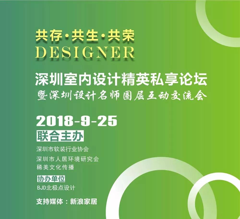2018年9月25日,由BJD北極點設計、深圳市軟裝行業協會、深圳市人居環境研究會、稀美文化傳播共同發起的【深圳室內設計精英私享論壇暨深圳設計名師圈層互動交流會】將在深圳南山隆重舉行。