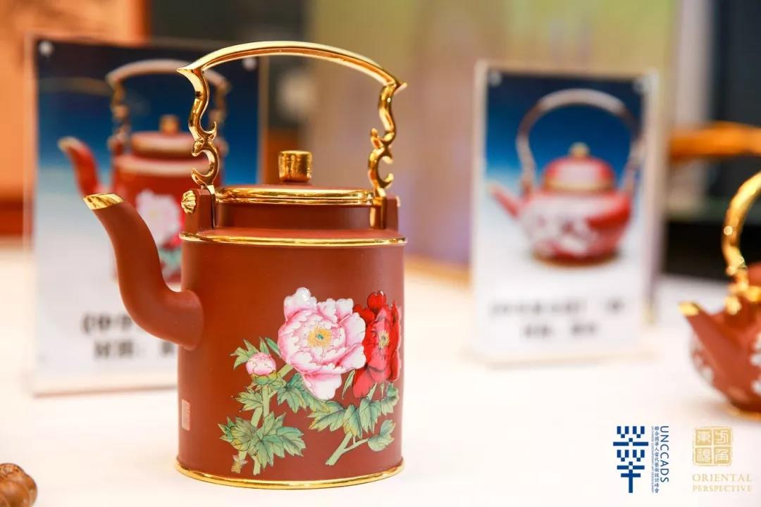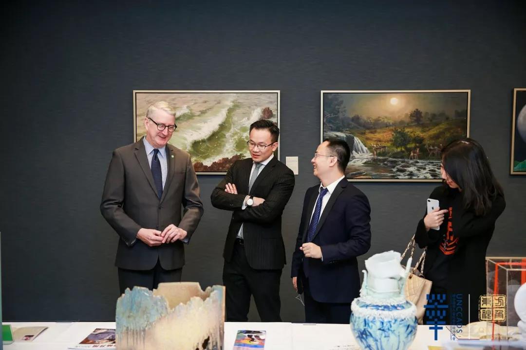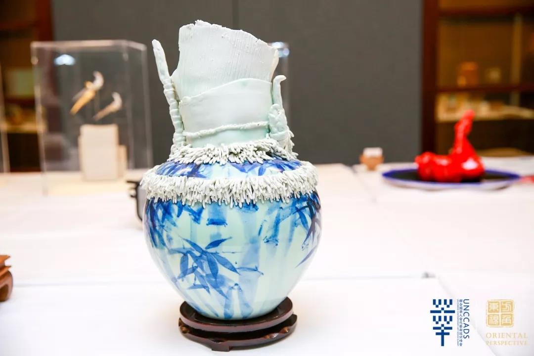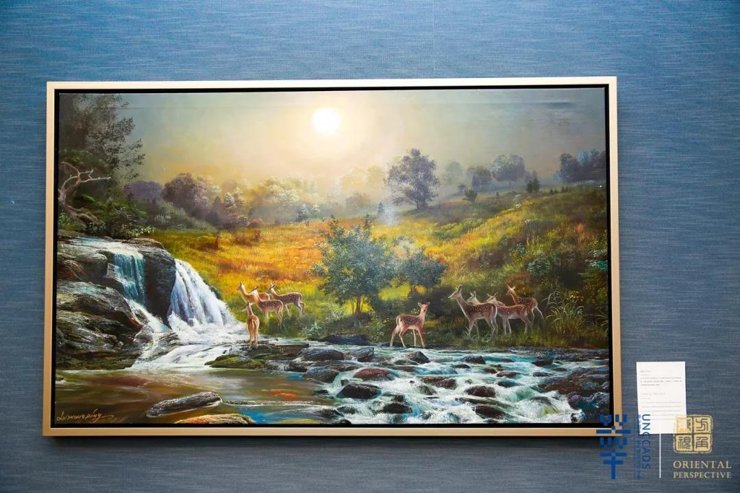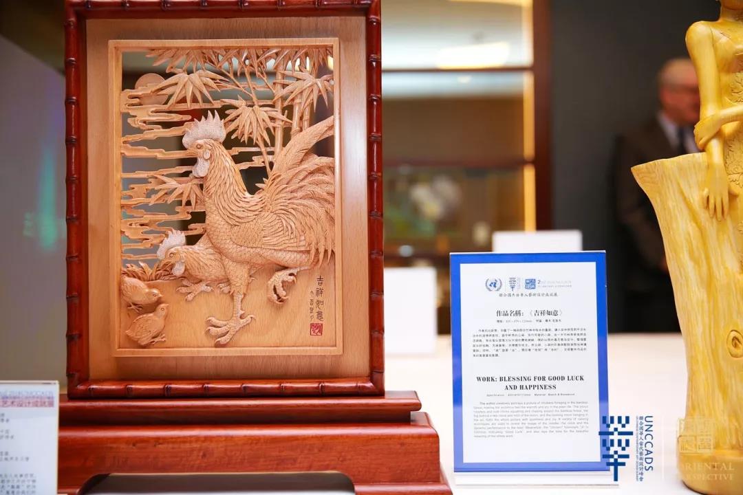 晚宴上,還展出了曾獲得過世界級設計大獎的藝術設計師作品,包括書畫、工藝美術、攝影、非遺藝術、平面設計、建筑設計、室內設計、軟裝設計、服裝設計、珠寶設計、工業設計等領域的百幅杰作,登頂聯合國舞臺,向世界展示東方設計美學。