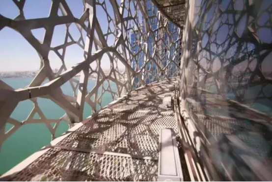 建筑師讓·努維爾將卡塔爾國(guó)家博物館形容為“第一個(gè)由大自然創(chuàng)造的建筑結(jié)構(gòu)”。“沙漠玫瑰”是建筑結(jié)構(gòu)的模型,尺寸和彎曲度不同的圓盤(pán)交錯(cuò),垂直結(jié)構(gòu)起到支撐作用,橫向錯(cuò)落疊加,如項(xiàng)鏈一般環(huán)繞著整座博物館。外觀上博物館沙漠色的混凝土結(jié)構(gòu)與沙漠環(huán)境相得益彰,建筑仿佛破土而出的玫瑰,線條相互交織,創(chuàng)造出意想不到的幾何形狀。