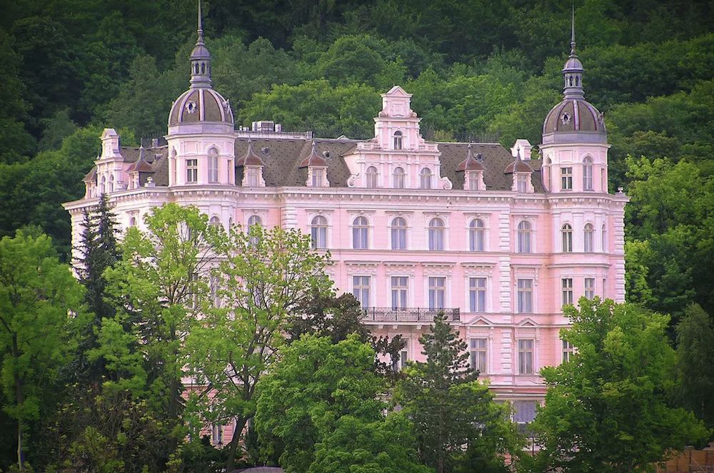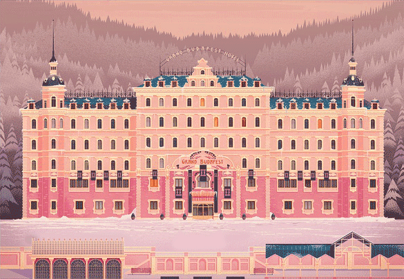 據介紹,布達佩斯大飯店的靈感來自于兩家實際的酒店的結合,外觀是參考一個名叫Grandhotel Pupp的粉紅色溫泉酒店。