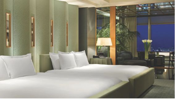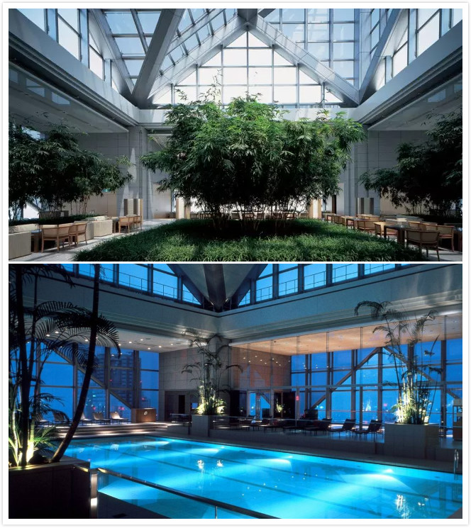 由John Morford主持的酒店室內設計盡顯極盡的夢幻。當高速電梯在41層高空開門后,迎候你的是由竹林、天廊、圖書館和客廳組合而成的空中大堂。