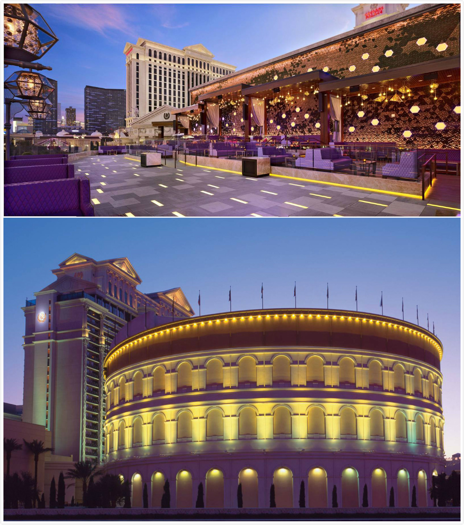 凱撒宮的華麗內飾仿佛進入了盛世的羅馬帝國宮殿一般, 里面還藏有許多米開朗基羅的作品;2003年為音樂流行天后席琳·狄翁特制的仿古羅馬競技場的開幕, 更為此酒店帶來活力,最有特色的是天花板的人造彩云會隨時間不同而變化。