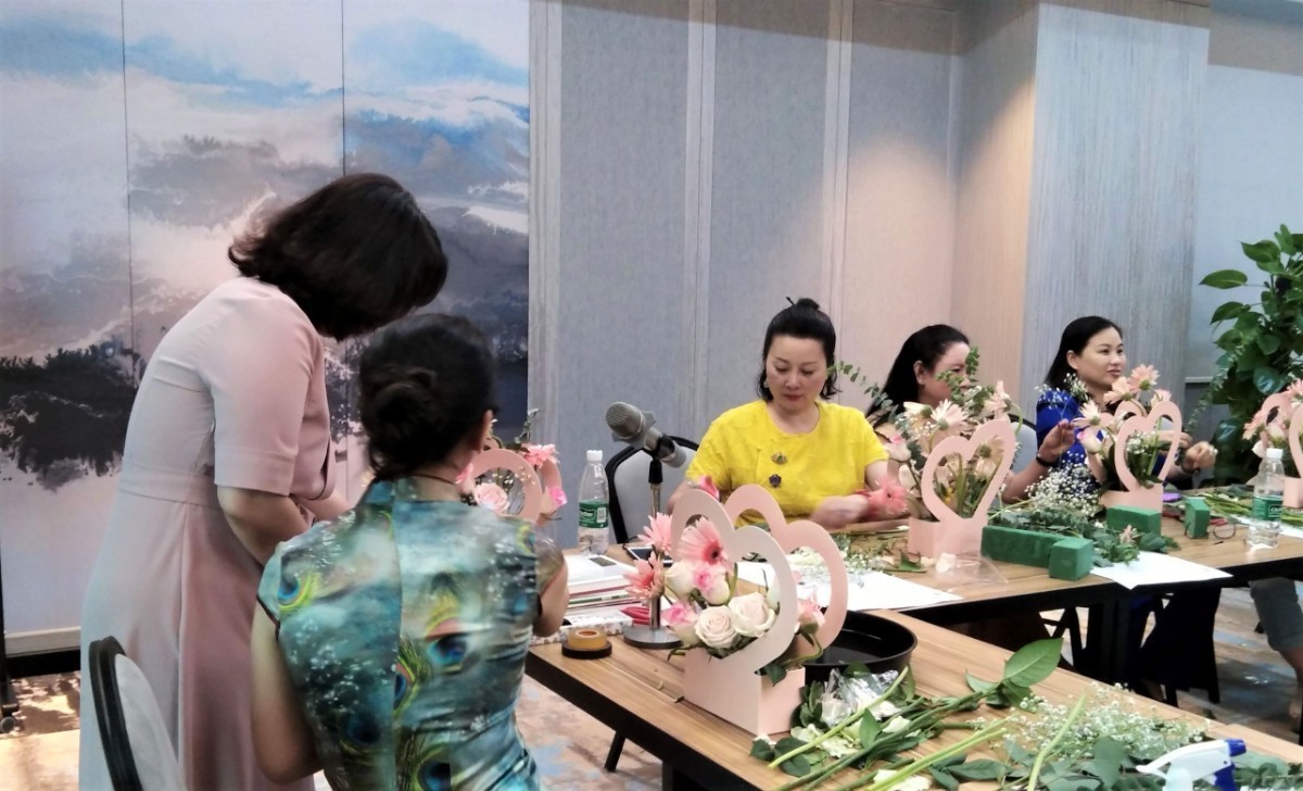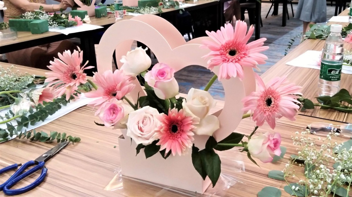 幾朵玫瑰、滿天星,配上尤加利綠植等材料,心靈巧手的美女會員們紛紛做出了自己最美的作品。經(jīng)過一個多小時的辛勤勞動,花卉變身成生機盎然、清雅別致的作品,望著自己精心制作的插花,每個人都很有成就感,此次活動在大家的歡聲笑語中結(jié)束。