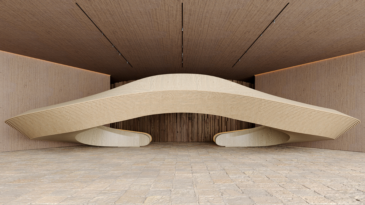 不喧嘩,不張揚,卻以圓融的形體與原始的材質,在白雪中隱匿出一種近乎禪意的神秘——這是侘寂美學的當代演繹,也是東方哲學與西方建筑語言的對話。