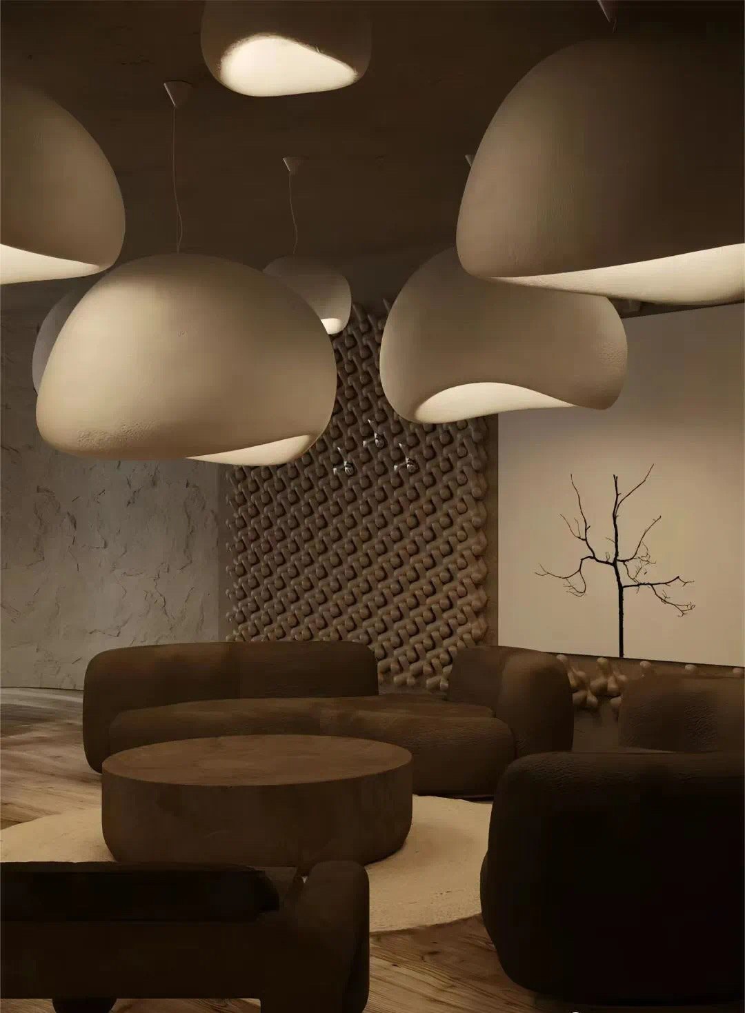 Karpaty Hotel的粘土燈具、球形雕塑已展現侘寂的“匠人精神”,可進一步強調其手工痕跡與自然肌理的禪意關聯——如粘土的裂紋象征生命的裂痕與修復,石材的粗糲呼應山川的永恒。