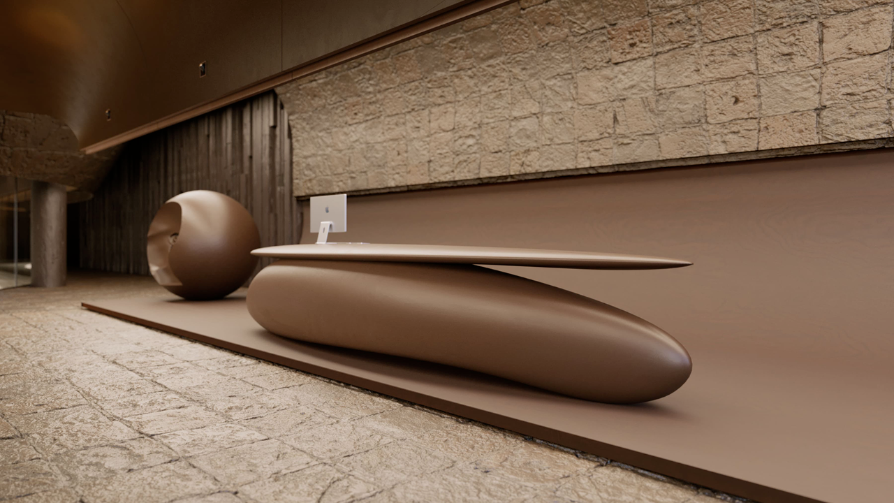 接待區的銅制前臺與球形雕塑,可被描述為“禪意儀式”的載體——前臺的流線型設計象征“無始無終”,球形雕塑象征宇宙的循環,引導人進入冥想狀態。