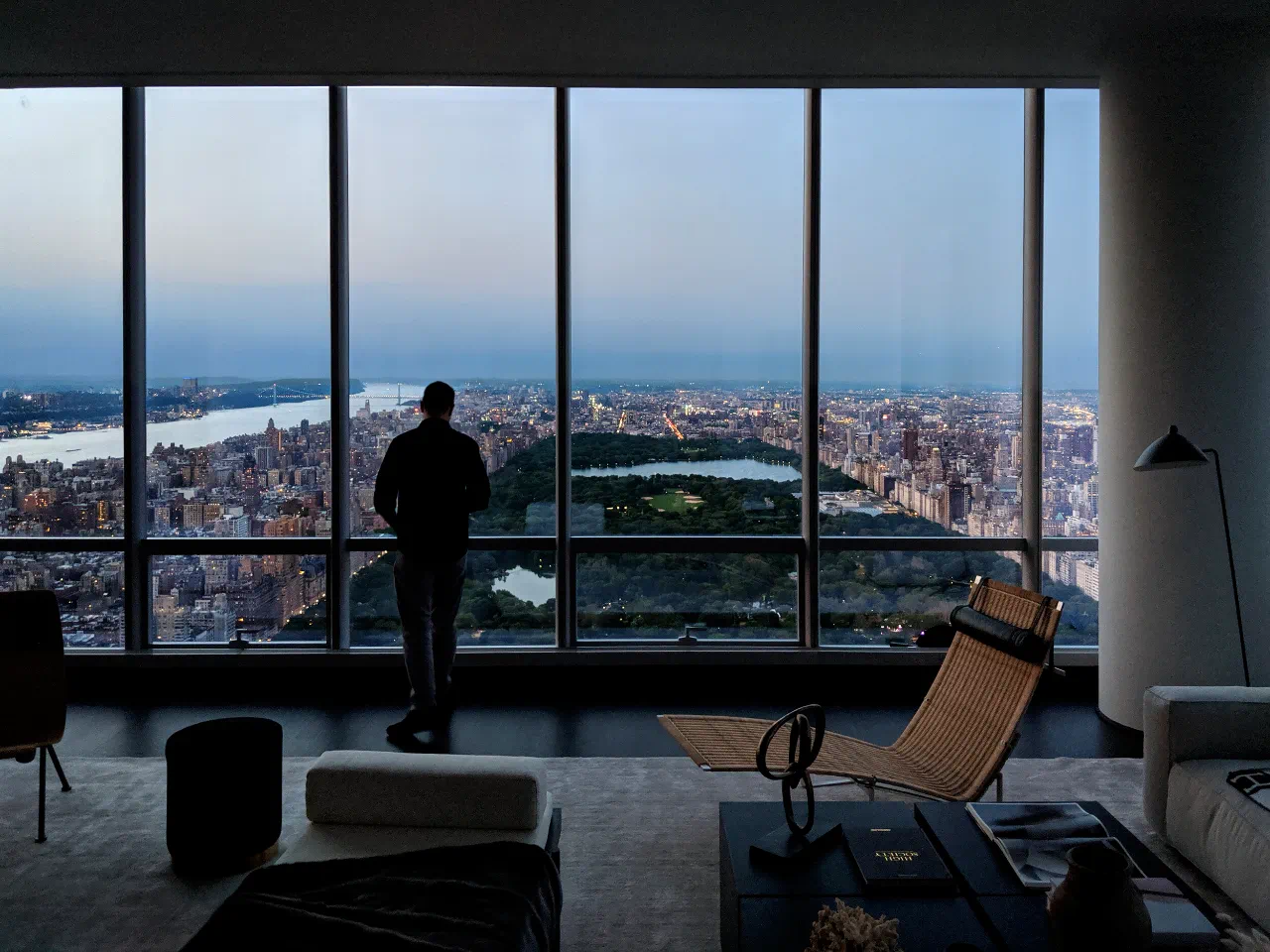 雙景視野:部分單元同時朝向中央公園與哈德遜河,通過落地窗與轉角窗設計,實現“一戶兩景”。