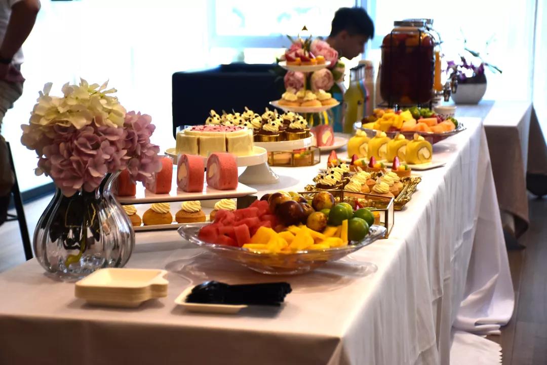 慶典現場為客戶準備了美味的茶水飲料與水果點心。