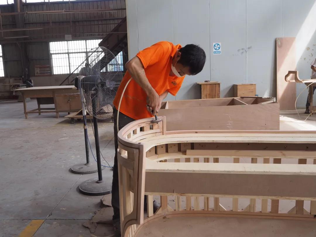 眾所周知,一張家具,從最初的選材,到后來的雕刻,中間要耗費不少心力,可以說是凝聚著每一位員工的汗水。在制作過程中,大家各司其職,從木材打磨、皮料裁剪到花紋雕刻,每一個細節,無一不體現工人們的工匠精神,這一點值得BJD的全體員工學習。