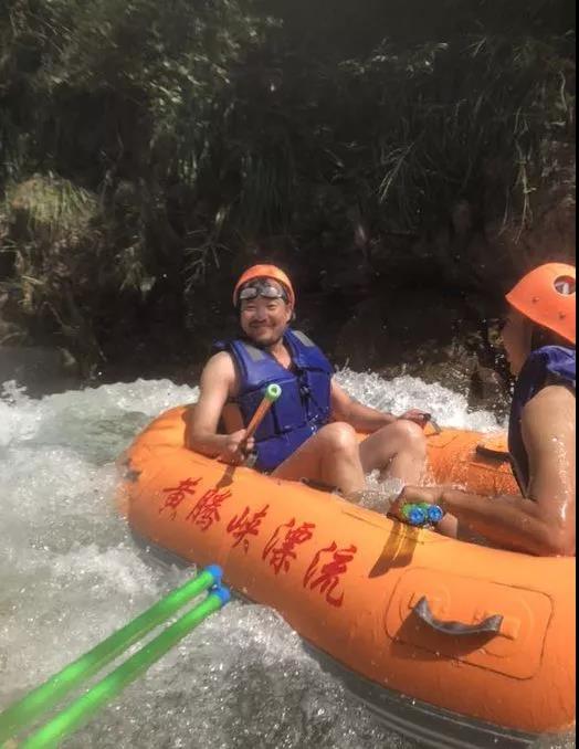 經過短暫的休息和午餐補給,我們終于到了最終的目的地黃騰峽大峽谷,合影后大家便迫不及待地帶著“武器”——水槍——興沖沖奔向了自己的漂流艇。