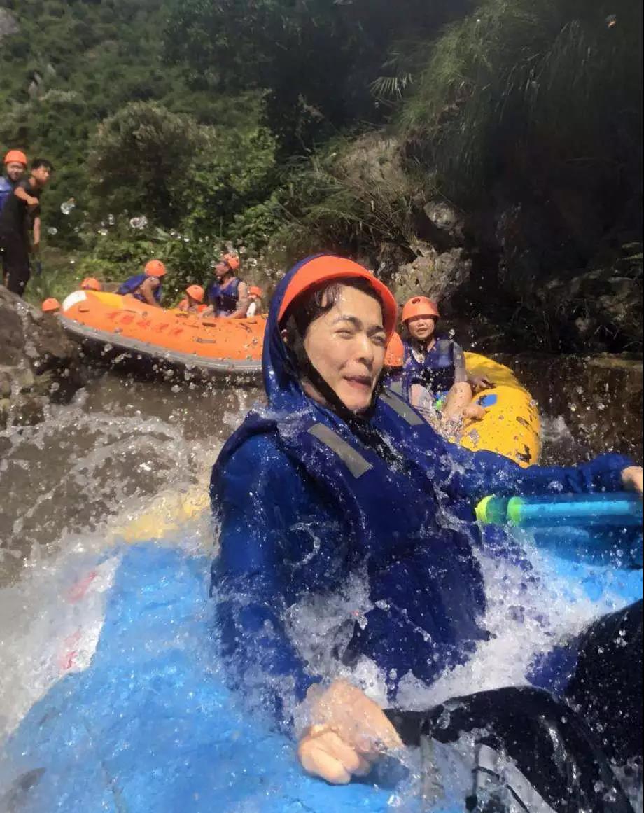 漂流果然刺激,大家隨湍急的水流在狹窄的河道上急沖而下,尖叫聲此起彼伏,等到了水流平緩的地方,大家端起水槍,不管對面是誰,一律發起“攻擊”,對方也毫不示弱,你來我往,好不暢快!