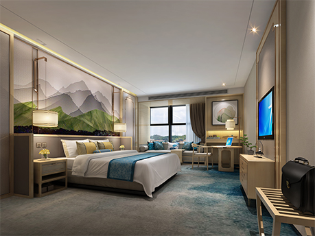 主題酒店房間墻面格調以寧靜、舒適為主。少用凸凹、起伏變化,墻面可選擇涂料、壁紙、壁布和木質裝飾板作為裝飾,達到溫馨和諧的裝飾效果。采用素潔光滑的墻體或圖案簡單、平滑的造型,色彩選用明度較高的白色或清淡的中性色,以取得寬敞明亮的房間空間效果。