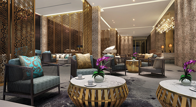 主題酒店大廳環境占空間面積中的一大部分,是消費者之間交流、會客的主要空間。由于活動行為比較繁雜,所以應根據消費者在酒店大廳的主要行為特點來劃分出主要區域,并依此確定酒店墻面及空間造型,保證穩定、安全的行為空間。